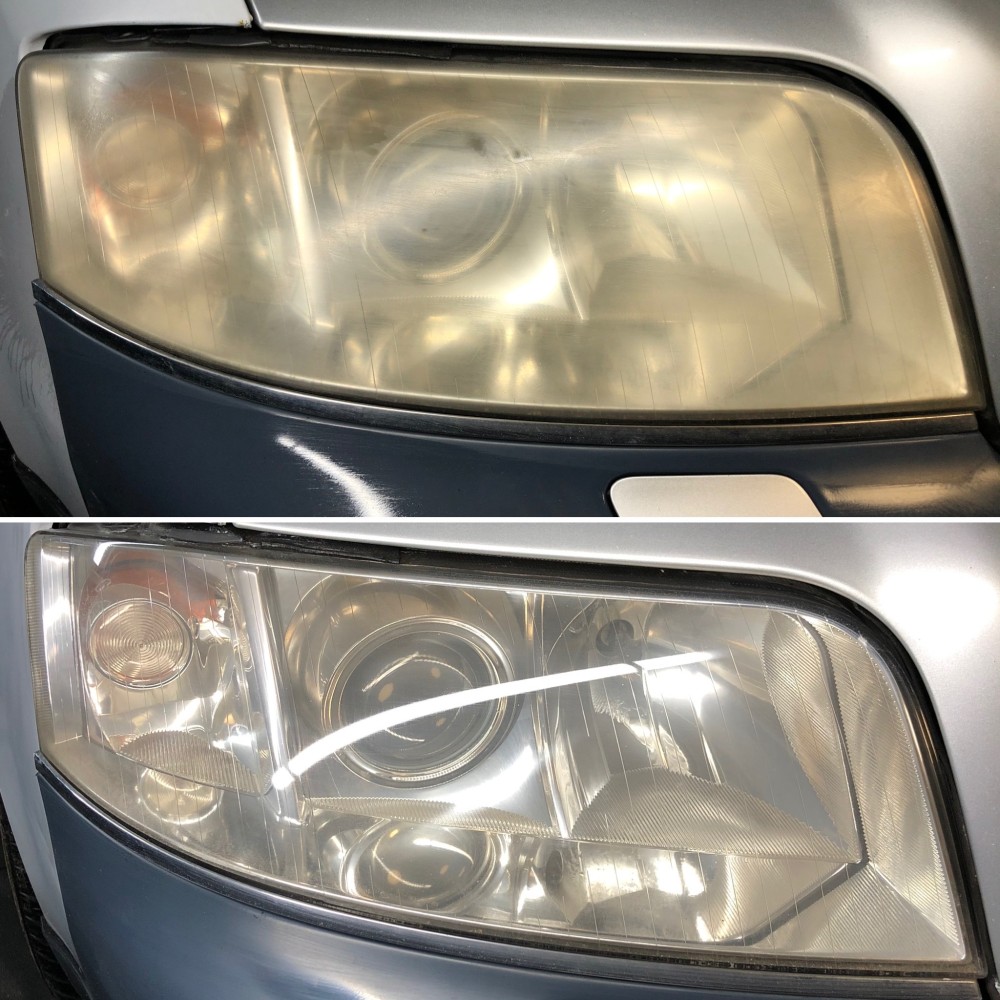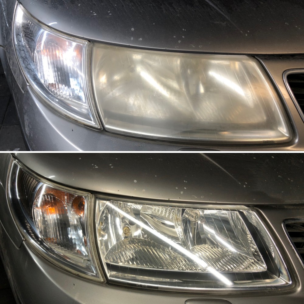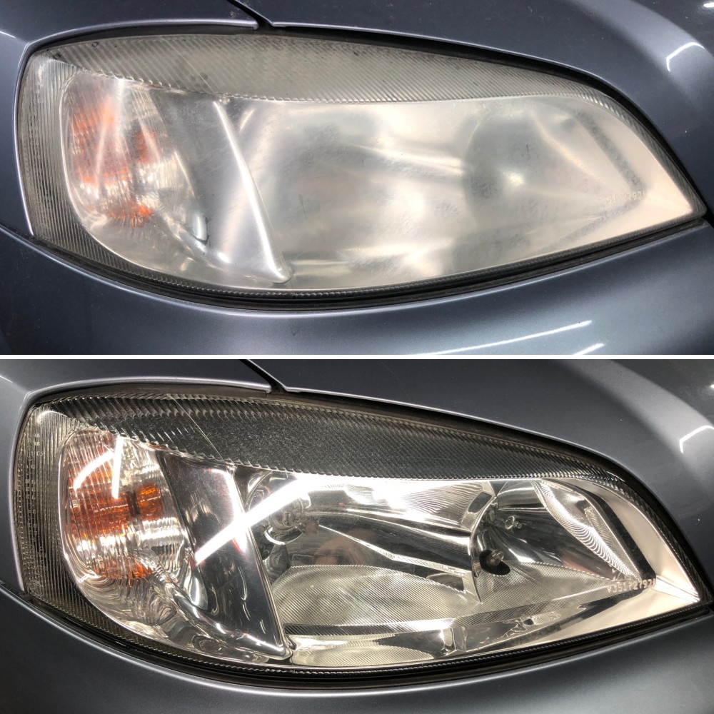 Duļķaini lukturi tiek nopulēti, lai atjaunotu dzidrību un uzlabotu gaismas atdevi drošākai braukšanai tumsā.